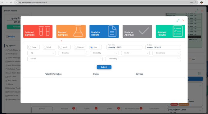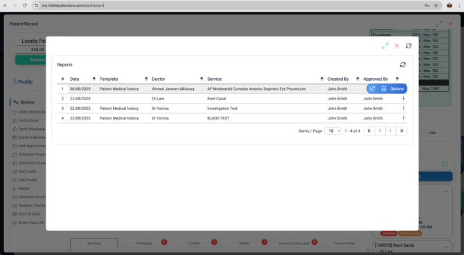 Serial • Date • Created By • Services • Doctor • Financial Details